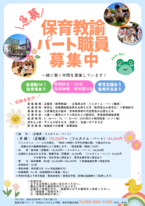 - 2024/11/21保育教諭(幼稚園教諭と保育士両方お持ちの方)募集中!芸術学園幼稚園